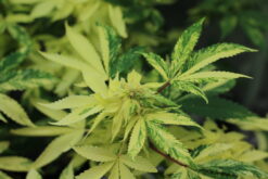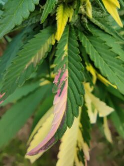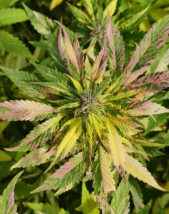 Description: Variegated Pink LemonAid #2 is a cut of a Pink LemonAid #2 plant that had one branch that showed variegated leaves (called a ‘sport’). The variegated segment was successfully propagated and now the Pink LemonAid plants have yellow and green variegated leaves, and sometimes the variegation can even be pink in color. Pink LemonAid #2 is a breeders keeper cut that has bright pink, crazy resinous buds that look like raspberries rolled in powdered sugar. Sativa with a narrow stature and skinny branches with long internode-spacings. A true joy in the garden that appeals to many. Nice, pleasant day time high.
