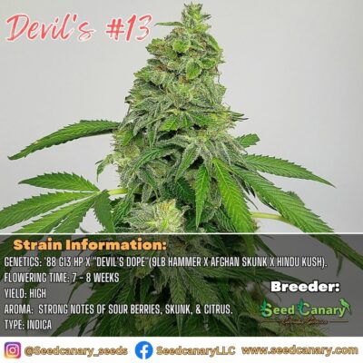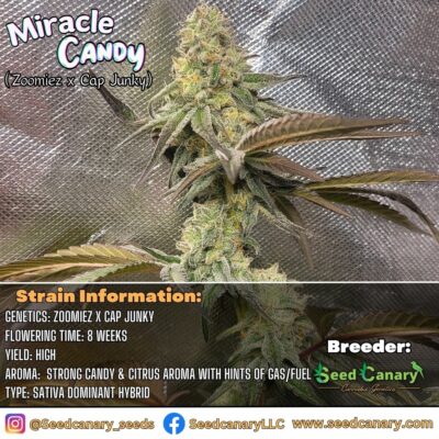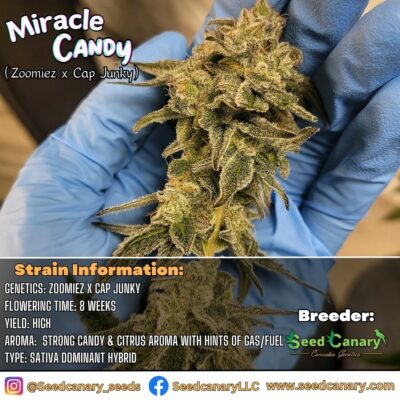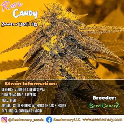 Our mission is to provide the best genetics possible & offering them at an affordable price. We aim to provide our customers with strains that have been worked on to perfection & provides growers with quality Cannabis which they can rely on. We primarily focus on breeding Indica Dominant Strains perfect for both Recreational, & Medical use and we have become known as the brand with the pill bottle packaging! Seed Canary Genetics Hunts through thousands of seeds every year looking for just a few cultivars worthy of breeding with as we firmly believe selective breeding using only THE BEST parents is what gives customers growing our strains such an advantage compared with those from different breeders.Â