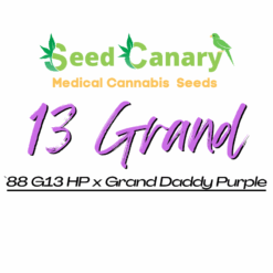 13 Grand is a hybrid cannabis strain made by crossing our `88 G13 Hashplant (male) with our sativa leaning Granddaddy purple (female). Growers may find a variety of unique phenotypes from these F1 seeds, as these have yet to be stabilized and can express many traits from both parents. 13 Grand can also have a unique Terpene profile as the aroma and taste can vary between each phenotype, ranging from a sour skunk scent to a strong aroma of artificial grapes. Many of our customers who received these as freebies from ordering our Devil’s #13 and Chicago Fire seeds asked us how they could purchase 13 Grand separately, so we decided to list them at a lower price since these are First generation seeds which have yet to be stabilized.