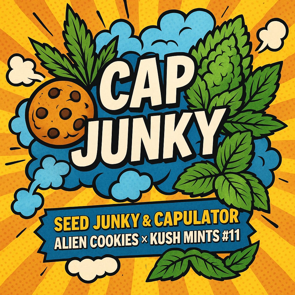 Modern powerhouse (Seed Junky × Capulator). Creamy gas meets insane potency and bag appeal. Dense structure and frost for days.