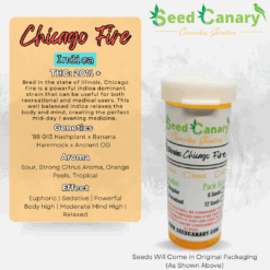 Chicago Fire is an indica Dominant Hybrid strain created as a potent cross between the popular strains `88 G13 Hashplant x Banana Hammock x Ancient OG. Unlike most typical indica dominant strains, Chicago Fire can produce a sativa like uplifting euphoric head high that is then followed by a heavy intoxicating body high. The aroma from this potent cross can vary between a sweet citrus smell with hints of pine, or very dank gas with hints of sweet mangos. The flower from this cross can be light or dark green, and gets the name “Chicago Fire” because of the production of very bright orange hairs that fills in the frost covered buds. This is a very interesting cross that can be grown rather easily and is extremely beginner friendly. This strain can be beneficial for patients suffering from mild to moderate symptoms of Depression, chronic pain, stress, and appetite loss.