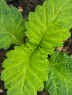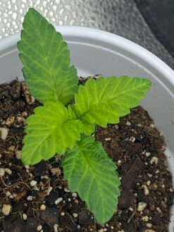 Despite limited photosynthesis due to the pervasive variegation, this strain exhibits a formidable strength and endurance that belies its grotesque exterior. It is unlike any other cannabis plant, unrecognizable and uncanny in its mutant form. Yet, it is an exhilarating experience to cultivate and watch it grow, and the seeds themselves are absolutely enormous.