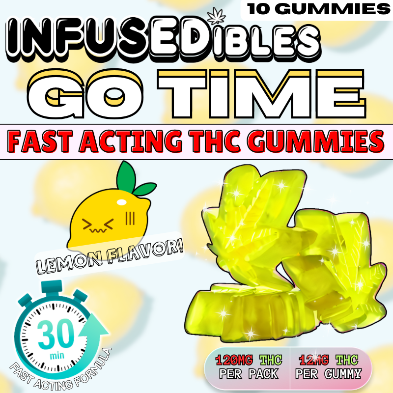 🍋FAST ACTING – GoTime Lemon THC Gummies (120mg THC)