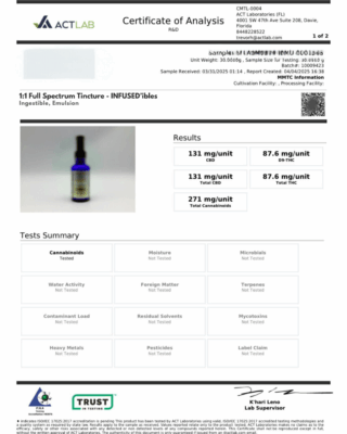 ๐ฟ INFUSED’ibles 1:1 Full Spectrum Tincture โ THC + CBD Balance