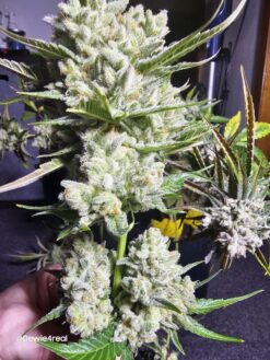Phenotypes range from smelling like a Garlic Patch with piney, gassy terps to smelling more like Pistachio Pudding with fruity undertones.