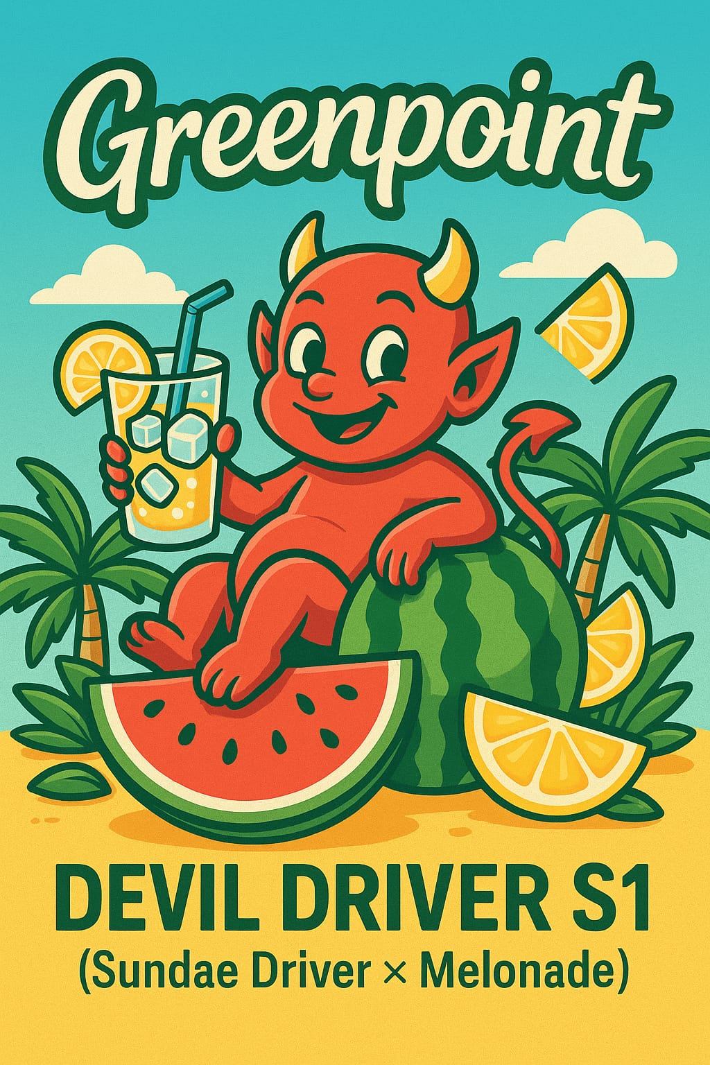Greenpoint took a fire cut of Tiki Madman’s legendary Devil Driver (Sundae Driver × Melonade) and selfed it to create these beautiful, uniform feminized beans. The result is a stabilized version of this elite cut, locking in the heavy resin, candy-sweet terp profile, and stunning bag appeal Devil Driver is known for.