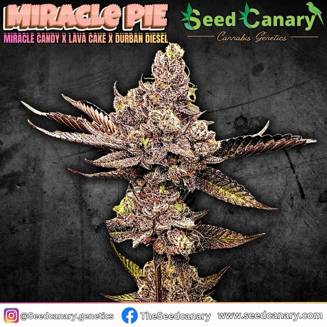 Miracle Pie is a brand-new Seed Canary exclusive, blending the sugary magic of Miracle Candy with the decadent complexity of Lava Cake and the electric fuel of Durban Diesel. This three-way hybrid was crafted for growers seeking loud flavor, sky-high resin output, and vigorous, stress-tolerant plants