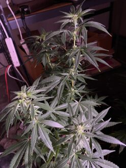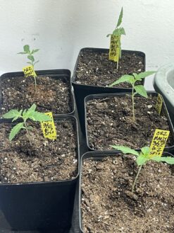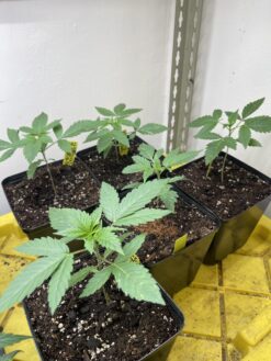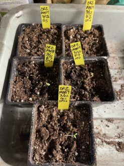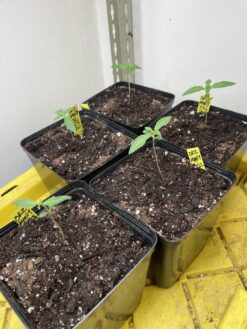 Latest Photo 4/22/25 One Month since these 5 seeds were moved to dirt. I upsoiled them to 2 gallong plastic containers. I only need one female and one male to push these to the next generation. The distinct characteristic of these are the huge leaves. photo 4/20 – one month in. Last photo April 12th, 23 days after putting the seeds in a napkin and 3 weeks after moving to dirt. Regular Seeds: Oreoz x Marty (Mac x OG Kush) Update: First photo of sprouting plants of this strain, 11 days in. Update 4/5/25 new photo attached. all 5 still poking along. One fell over, i think the nutrition I put on it was too strong. my bad, but the other ones handled it. Earlier Report 3/3/25 I moved them to 1/2 Gallon containers just a few days in. Notes and Description: Due to the increased sales of this hybrid I decided to pop a batch of these seeds to backcross the strain for an F2 and feminize the seeds for a future drop. (see photo). I popped 5 seeds and they all sprouted. I moved them to pint containers in Happy Frog and they all came out of the dirt, very quickly. That’s just 5 days from fresh seeds, napkin to soil as shown in the last photo. Almost too quick. I have a small amount of these left, also shown in the picture above. I relisted them for sale as Four-packs at $8/pack = Oreoz x Marty cross. Keep in mind I throw in atleast 6 free seeds, (2 packs of 3 each – Regular seeds that are also exotic mixes). When I grew this, too be named, strain last year it has a strong terp profile, earthy and roundish buds with good density. The price above covers handling of about $2/ea seed thus $8/pack of four, plus there is shipping as shown on checkout. I’ve been breeding for several years but as I’ve become successful at my other adventures, so I need to exit this growing game for weed, but mixing strains may still be on my agenda. I am distributing my back-stock of seeds at a minimal expense. Better to distribute them than to let them sit in containers. This drop of four-packs is Oreoz female x Marty OG (Mac x OG Kush) male.
