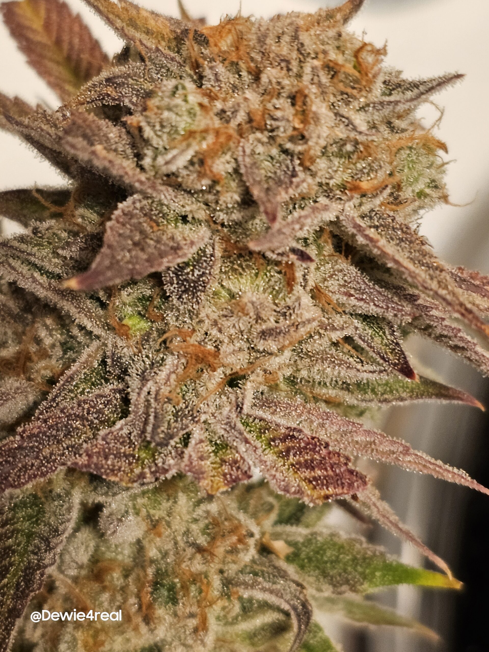 Rainbow G is Super heavy trichomed Og kush with Grape Pop, blueberry candy, Lime Popsicle, Og terps very sweet & surgery while still hitting like a quality Og. Medium stretch, standard Og yeild, Easy trim, everything is caked in trichomes to the tip except big fan leaves. Will stand out in any grow room. Limited run.Â