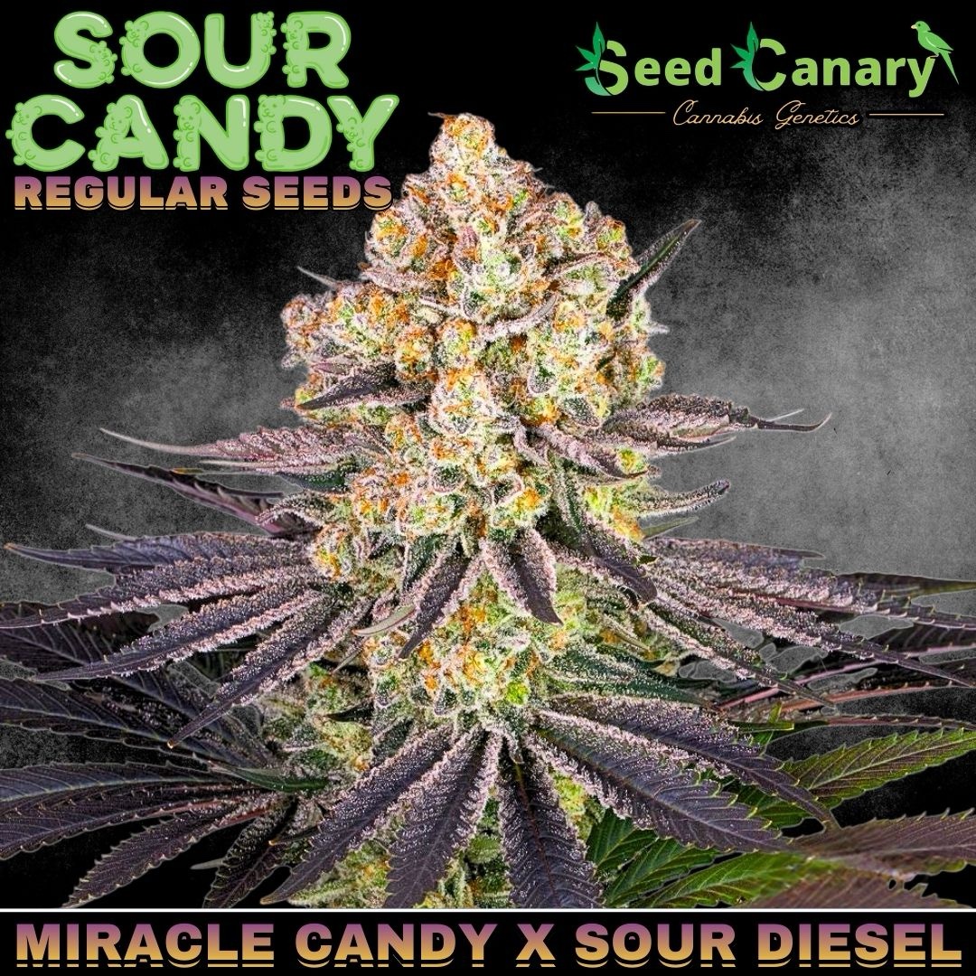 Meet Sour Candy, a high-energy hybrid born from the sweet potency of Miracle Candy and the legendary fuel-forward intensity of Sour Diesel. This regular seed drop is crafted for breeders and growers who want to add loud terp profiles, vigorous growth, and explosive resin production to their garden or breeding project.