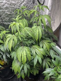 Here are some pics of currently growing soylent macs. The short one was recently topped, to keep it short in the 2 gallon container. The larger ones are yellowing, but I only have them in 2-3 gallon containers and I need to upsoil them to 5-gallon before flowering (I may not even be able to flower them because I am reducing my growing of finished plants, I just can’t give them what they need all the way to the finish. Breeding is more my skill so I am going to try and make a feminized seed for this strain next. I am not the best grower and these plants are somewhat forgivable once you have the right pheno. I will also attach a picture of a young clone. The last photo is a picture of the Mother – I labeled it Mac – M originally from Harborside in Oakland and I don’t know the original breeder. I keep it around for genetics, but don’t grow it any longer since I this Soylent Mac.