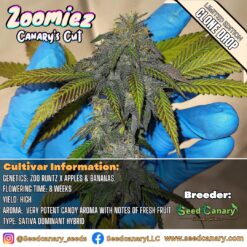 Our breeders cut of Zoomiez straight from our private stock is finally available to purchase for a very limited time. This particular phenotype expresses a lot of the desirable traits from Apples & Bananas while also producing an increased yield & a unique candy aroma that is unlike anything else we’ve yet to find! This Cut produces absolutely top quality flower full of color and we can almost guarantee that you will also fall in love with this special clone of zoomiez just like we did! Â