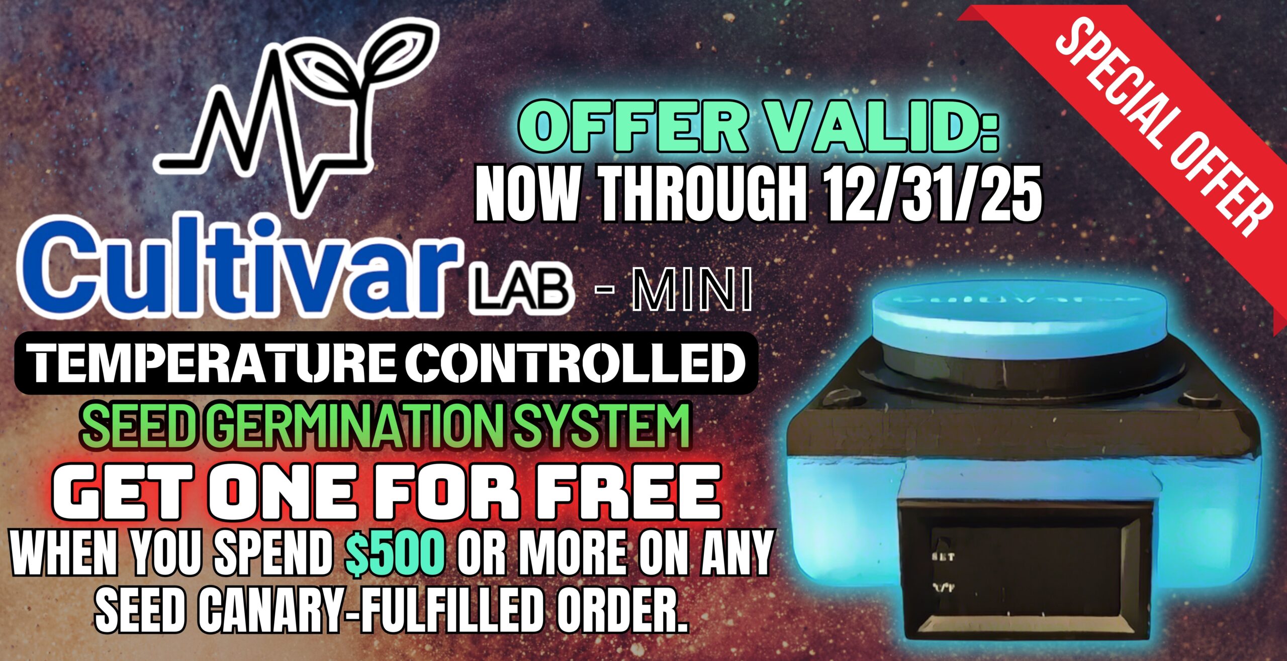 Spend $500 or more on ANY Seed Canary Fulfilled Order and receive a FREE Cultivar Lab MINI added to your order automatically (NO COUPON CODE NECESSARY) — our gift to you this holiday season!
