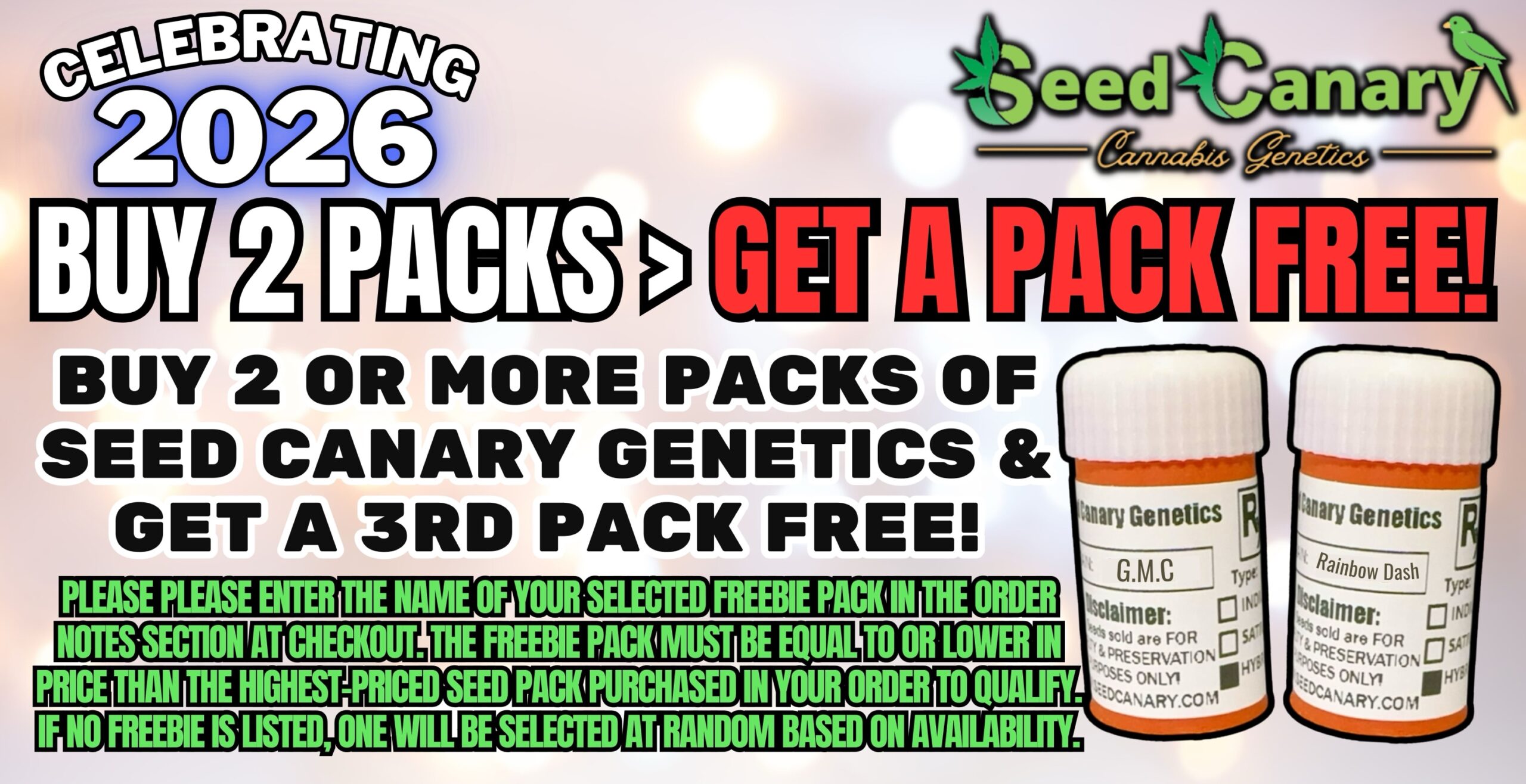 During the month of January 2026, all orders placed on seedcanary.com will be entered into a raffle where you can win seeds & THC Infused Edibles!