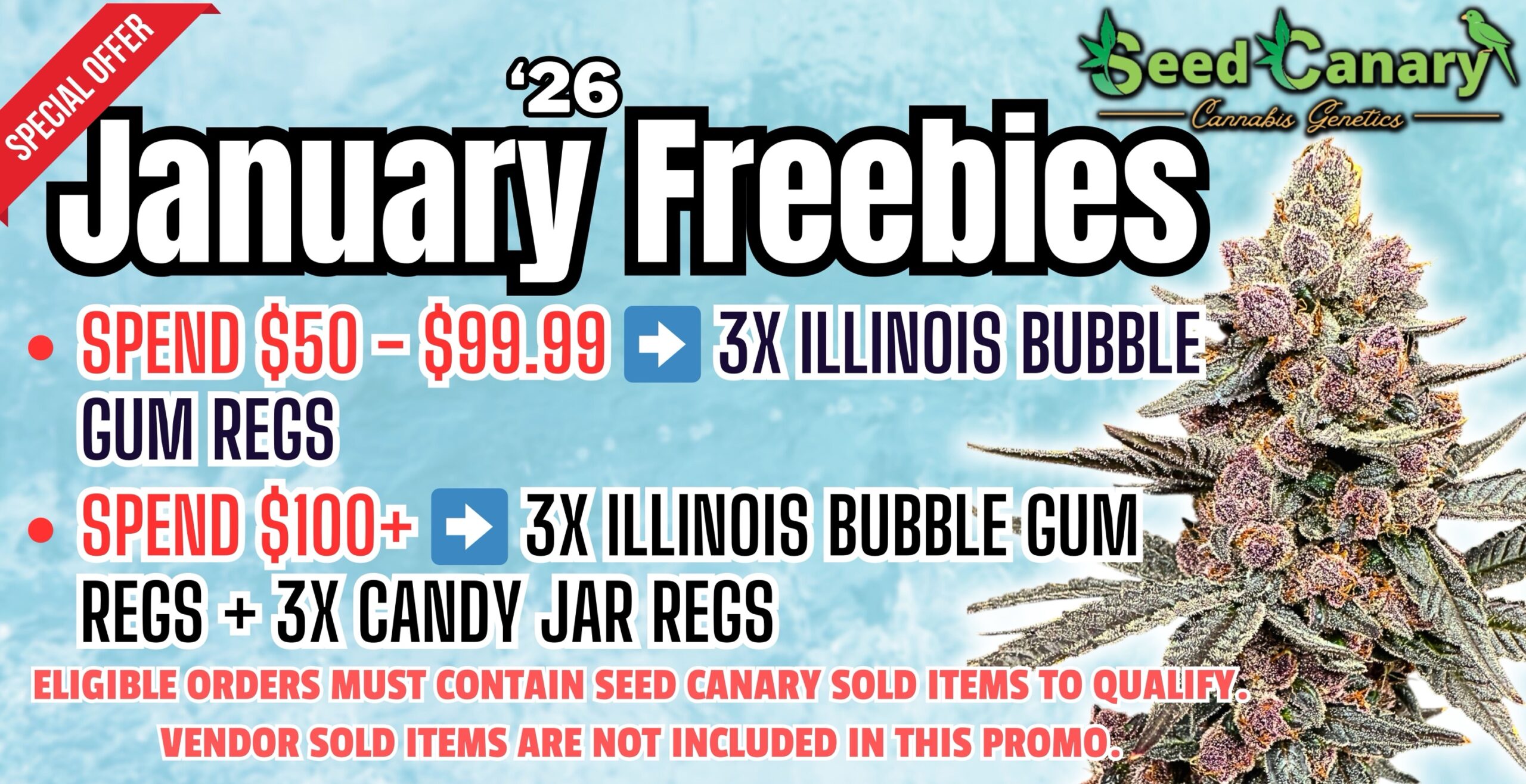 From now until January 31st 2026, score an Exclusive Pack of Seeds w/ Any Seed canary Fulfilled Order Over $50.00 — While Supplies Last!.