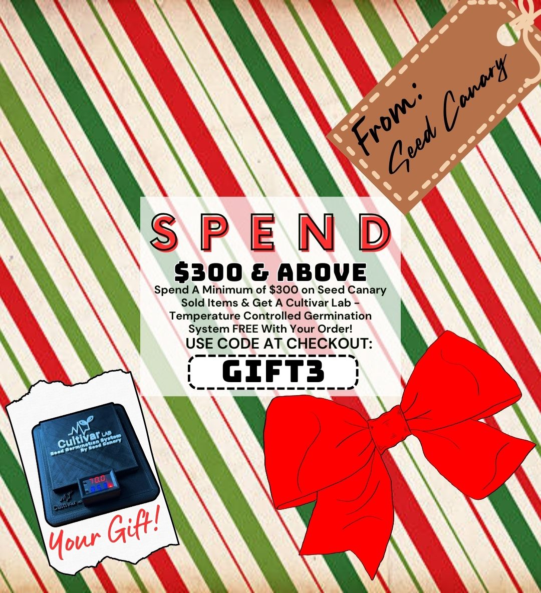 Get a FREE Cultivar Lab – Temperature Controlled Germination System As Your Holiday Gift When Spending $300.00 & Above on Seed Canary Sold Items!